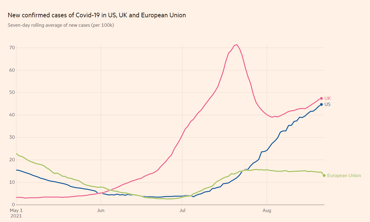 The reason for the Fed to refrain from reducing support comes from the virus, which means weaker economic activity in the world's largest economy. That could lead to the greenback receiving fresh safe-haven flows. Moreover, cases are on the rise in the UK, and that could send sterling down.