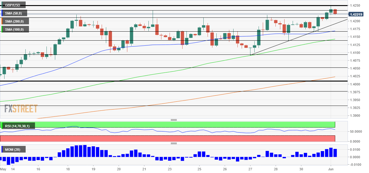 The four-hour chart is showing that cable is trading in an uptrend, setting higher lows. Moreover, momentum is to the upside and the pair is trading above the 50, 100 and 200 simple moving averages, bullish signs.