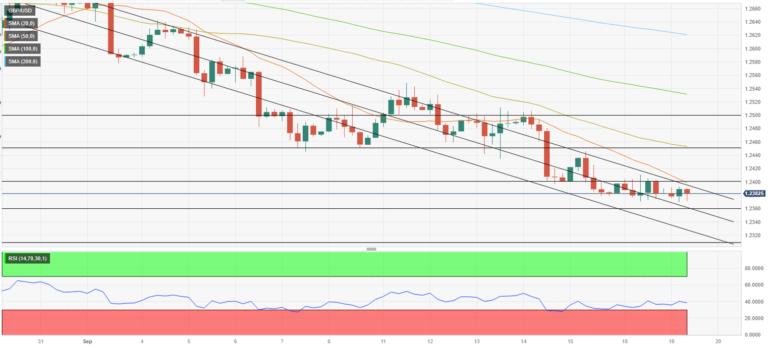 - GBP/USD continues to fluctuate in a tight channel below 1.2400.