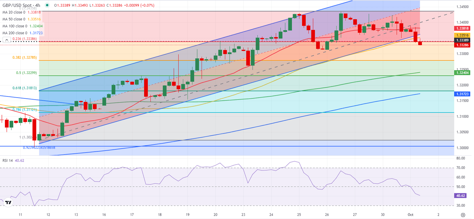 On the downside, 1.3300 (round level) aligns as interim support before 1.3275 (Fibonacci 38.2% retracement of the latest uptrend) and 1.3240-1.3230 (100-period Simple Moving Average (SMA), Fibonacci 50% retracement). In case GBP/USD returns within the ascending channel by reclaiming 1.3350 (lower limit of the ascending channel, 50-period SMA), 1.3400 (round level) and 1.3440 (mid-point of the ascending channel) could be seen as next resistance levels.