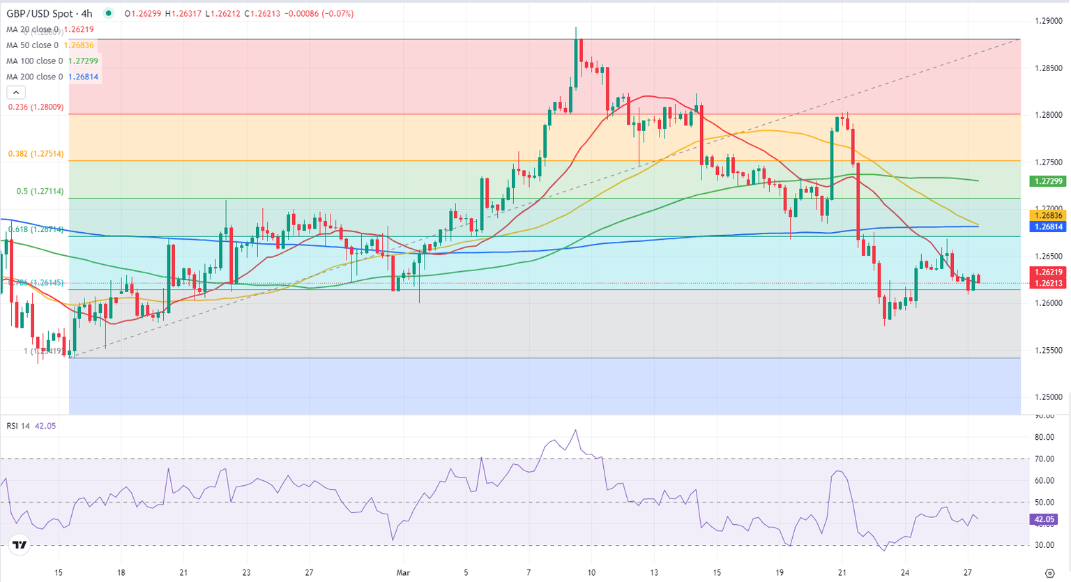 - The 200-day SMA aligns as strong support near 1.2600.