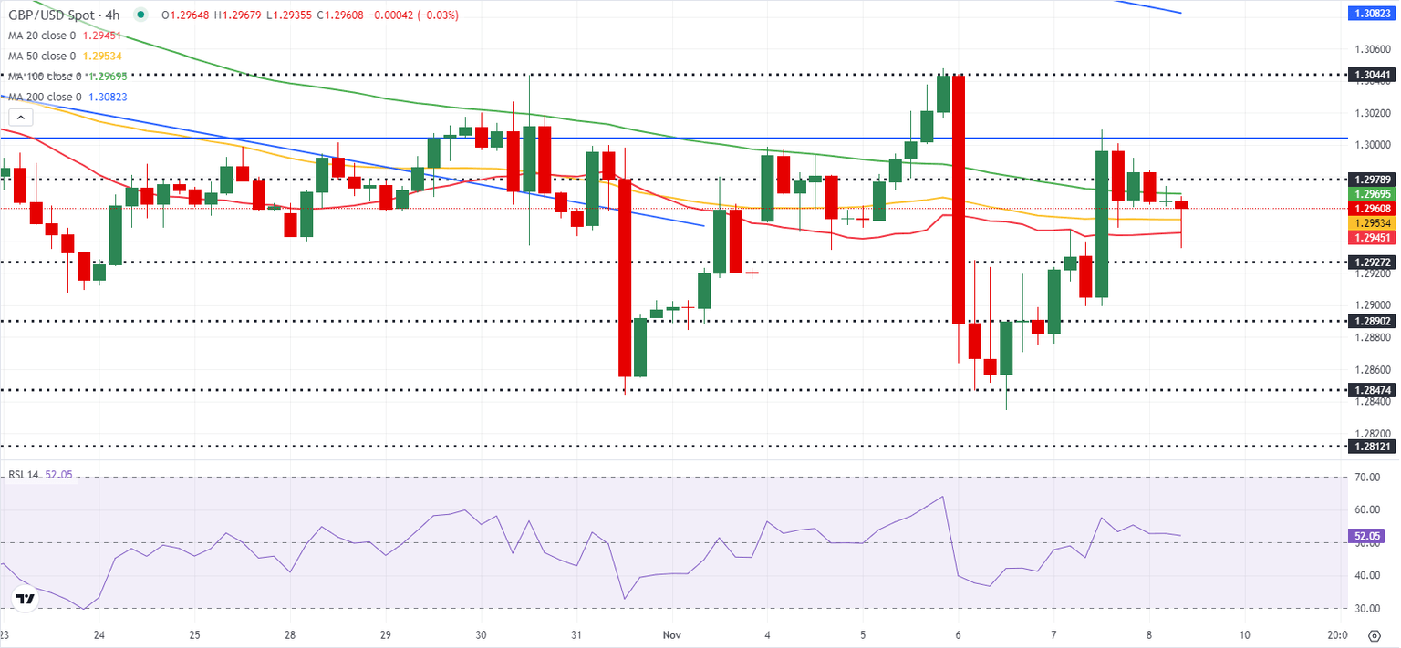 The Relative Strength Index (RSI) indicator on the 4-hour chart stays slightly above 50, reflecting sellers' hesitancy. On the upside, the 100-day Simple Moving Average (SMA) forms a key resistance level at 1.3000. A weekly close above this level could attract technical buyers. In this scenario, 1.3050 (static level) could be the next hurdle before 1.3100 (50-day SMA).