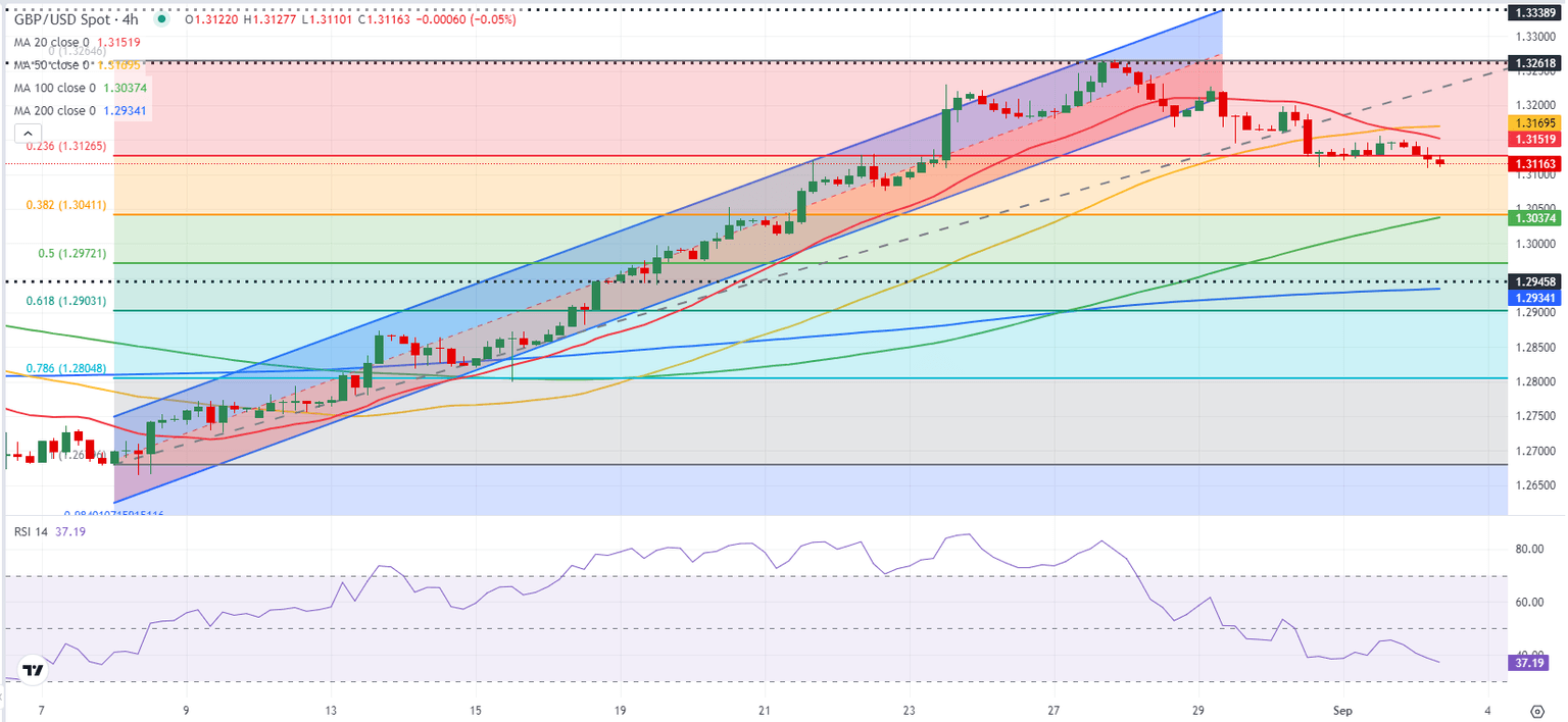 GBP/USD stays under modest bearish pressure in the European session on Tuesday and retreats toward 1.3100. The technical outlook suggests that sellers retain control as focus shifts to August ISM Manufacturing PMI data from the US.