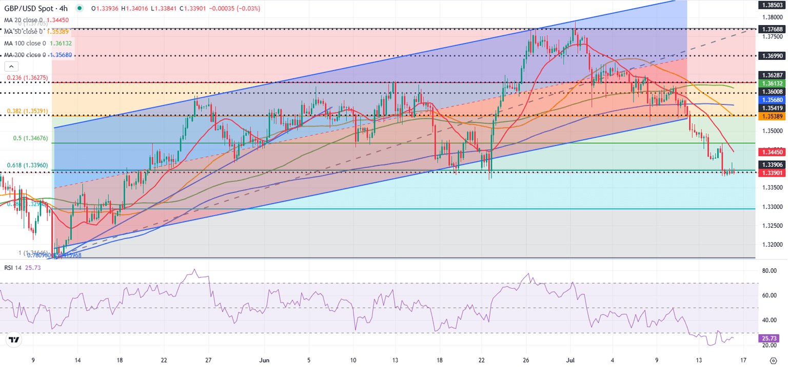 In the second half of the day, June Producer Price Index and Industrial Production data will be featured in the US economic calendar. Additionally, several Fed policymakers will be delivering speeches. Meanwhile, US stock index futures trade marginally lower on the day after losing about 0.5% earlier in the European session. In case Wall Street's main indexes gain traction after the opening bell and reflect an improving risk mood, the USD could lose its strength and allow GBP/USD to limit its losses.