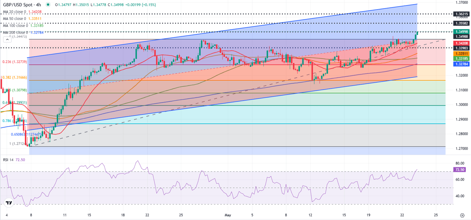 - GBP/USD trades at its highest level since February 2022 near 1.3500.