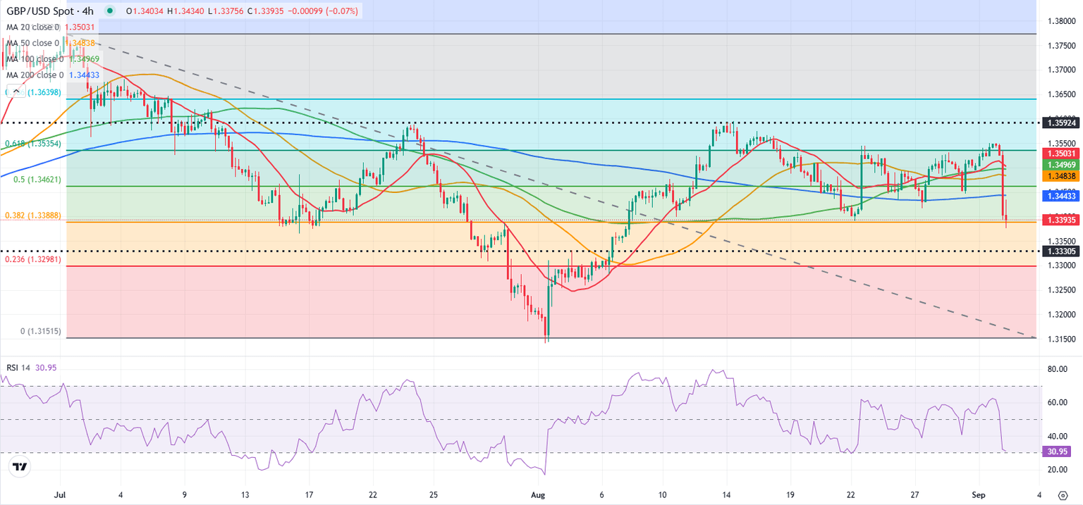 After posting modest gains on Monday, GBP/USD turned south and dropped to its lowest level since early August below 1.3380. Although the pair managed to rose back toward 1.3400, it finds it difficult to gather recovery momentum.