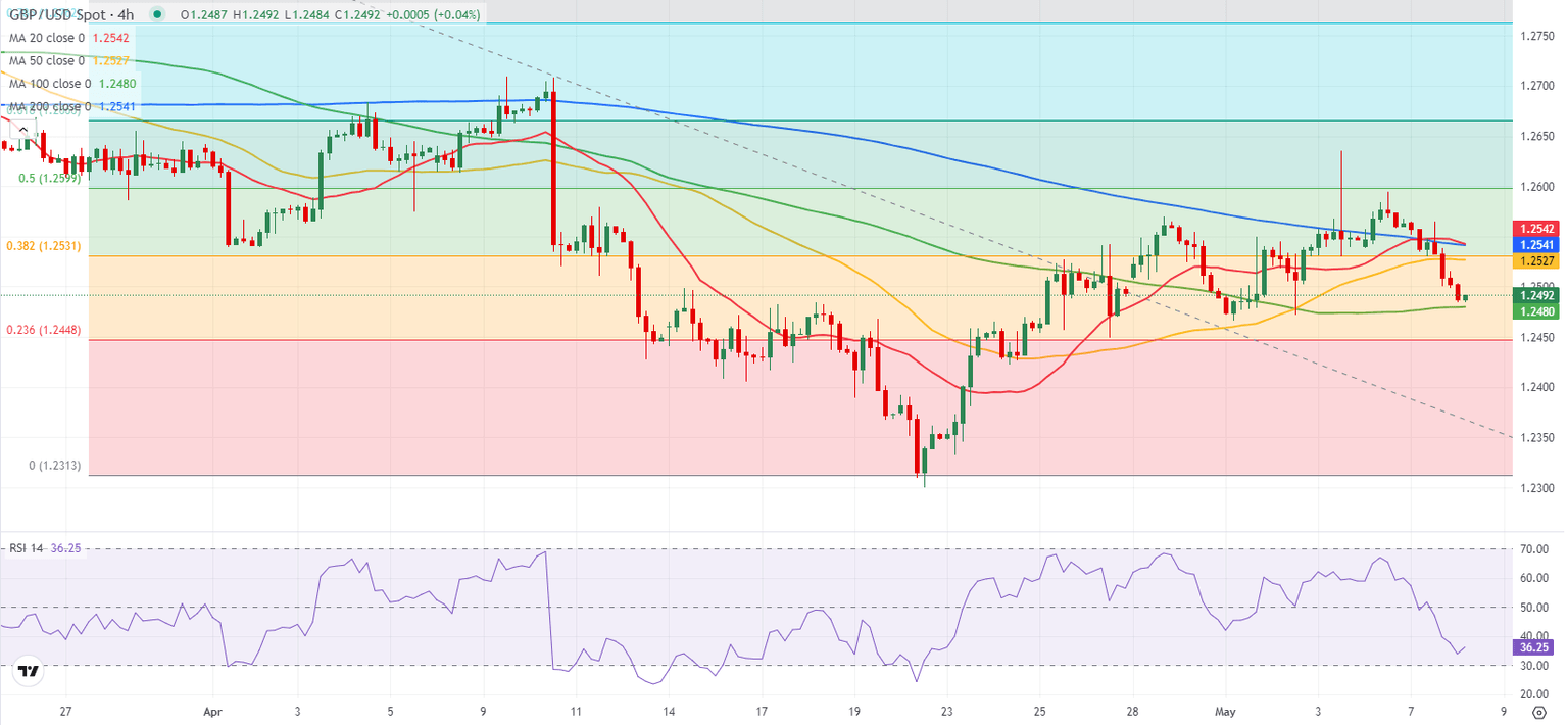GBP/USD closed well below the 200-day Simple Moving Average (SMA), which is currently located at 1.2550, after failing to clear this level earlier in the week. Additionally, the Relative Strength Index (RSI) indicator on the 4-hour chart dropped below 40, reflecting the bearish tilt in the near-term technical outlook.