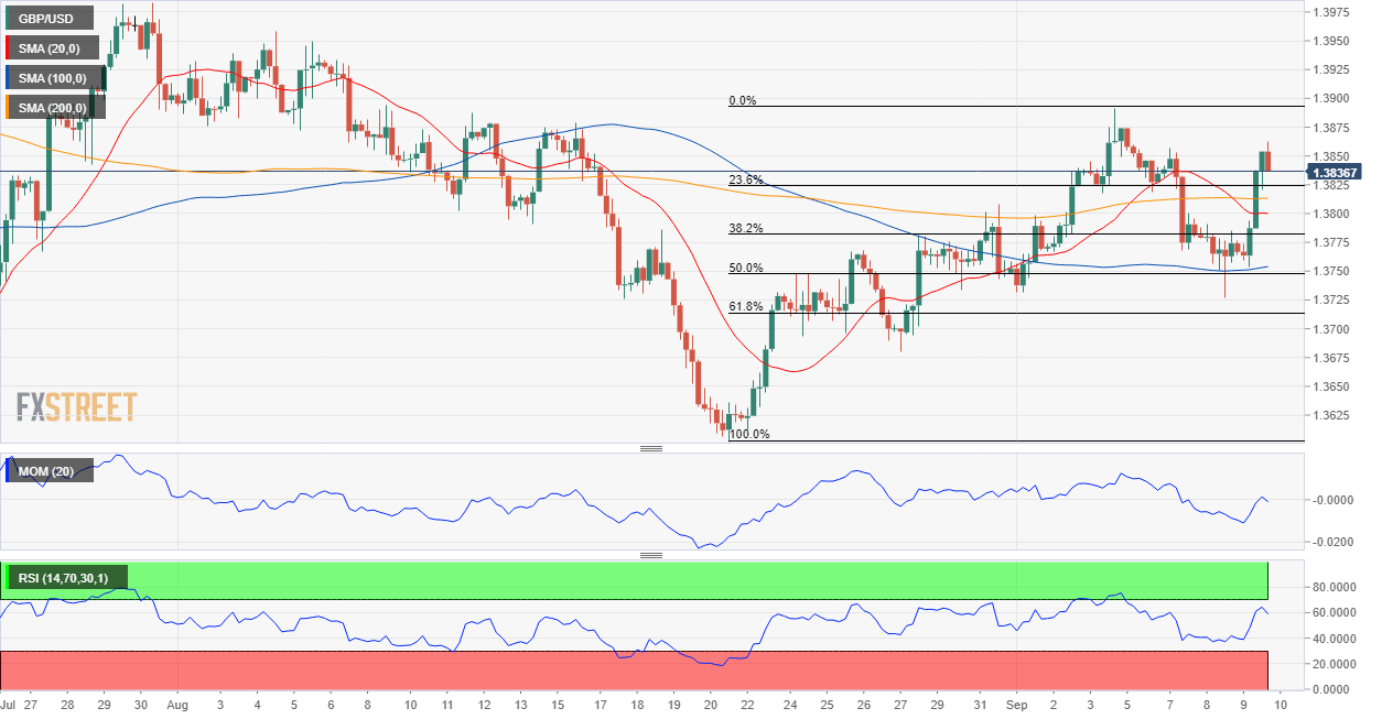 - GBP/USD holds on to intraday gains near its weekly highs, could test 1.3900.