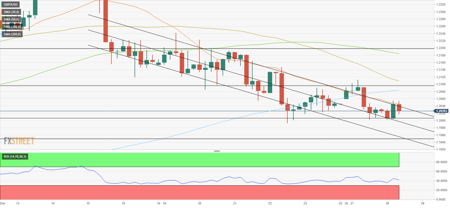 GBP/USD has managed to erase a small portion of its daily losses after having tested 1.2000 earlier in the day on Wednesday. The pair's near-term technical outlook shows that the bearish bias stays intact and additional losses could be witnessed in case 1.2000 turns into resistance.