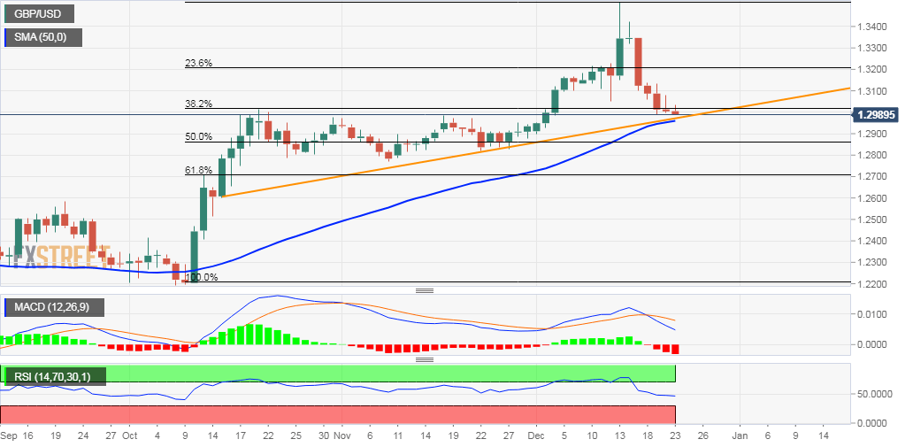 From a technical perspective, the pair has been consolidating in a range near confluence support comprising of a two-month-old ascending trend-line and 38.2% Fibonacci level of the 1.2204-1.3422 positive move. This is closely followed by 50-day SMA, around the 1.2960-55 region, which if broken might be seen as a key trigger for bearish traders. Below the mentioned support, the pair is likely to turn vulnerable and accelerate the fall further towards the 1.2900 handle. The downward trajectory could further get extended towards 50% Fibo. level support near mid-1.2800s.