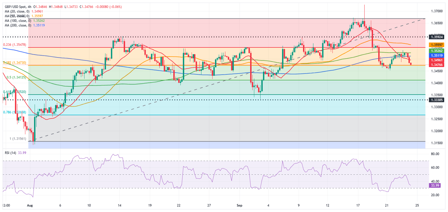 GBP/USD failed to stabilize above the 100-period and the 200-period Simple Moving Averages (SMAs) on the 4-hour chart and the Relative Strength Index (RSI) declined below 40, reflecting a bearish stance.