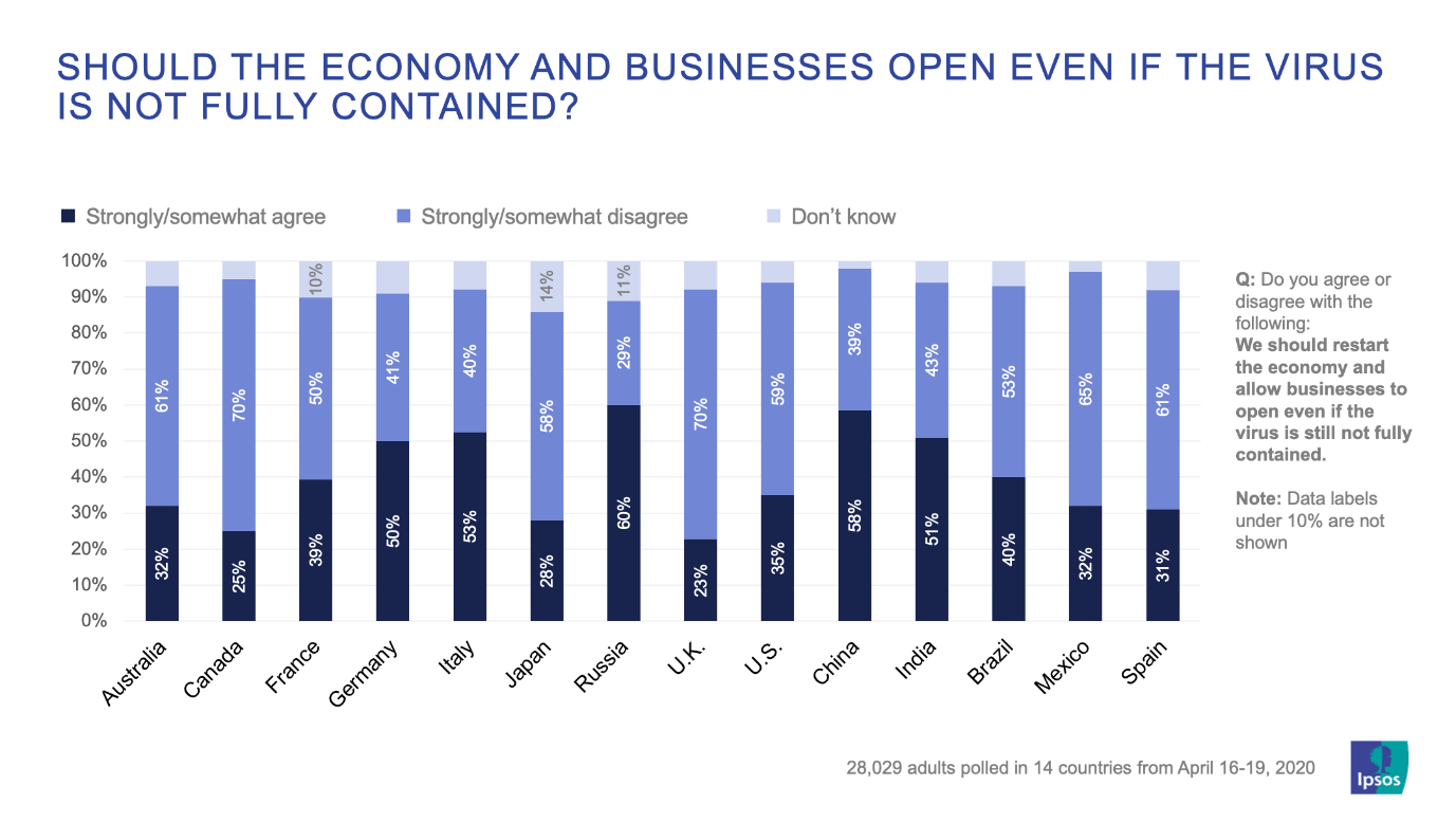 Around 70% of Brits do not want businesses to open if the virus is not fully contained, more than in any other country: