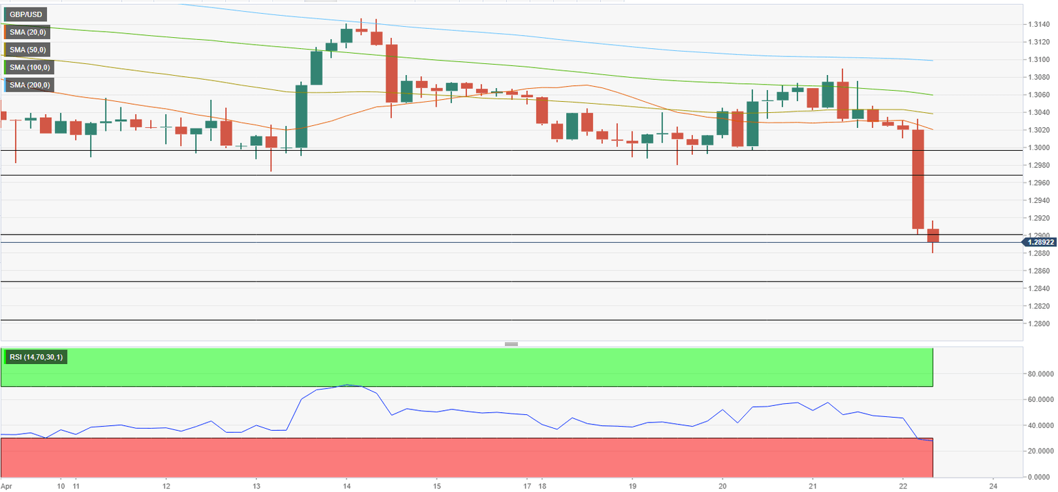 GBP/USD has lost its traction after extending its rebound toward 1.3100 on Thursday. Pressured by cautious comments from Bank of England (BOE) officials and disappointing data releases from the UK, the pair came under heavy bearish pressure early Friday and was last seen trading at its lowest level since November 2020 below 1.2900. Although profit-taking ahead of the weekend could help the pair rebound, buyers are unlikely to show interest in the British pound given the severity of the latest decline.