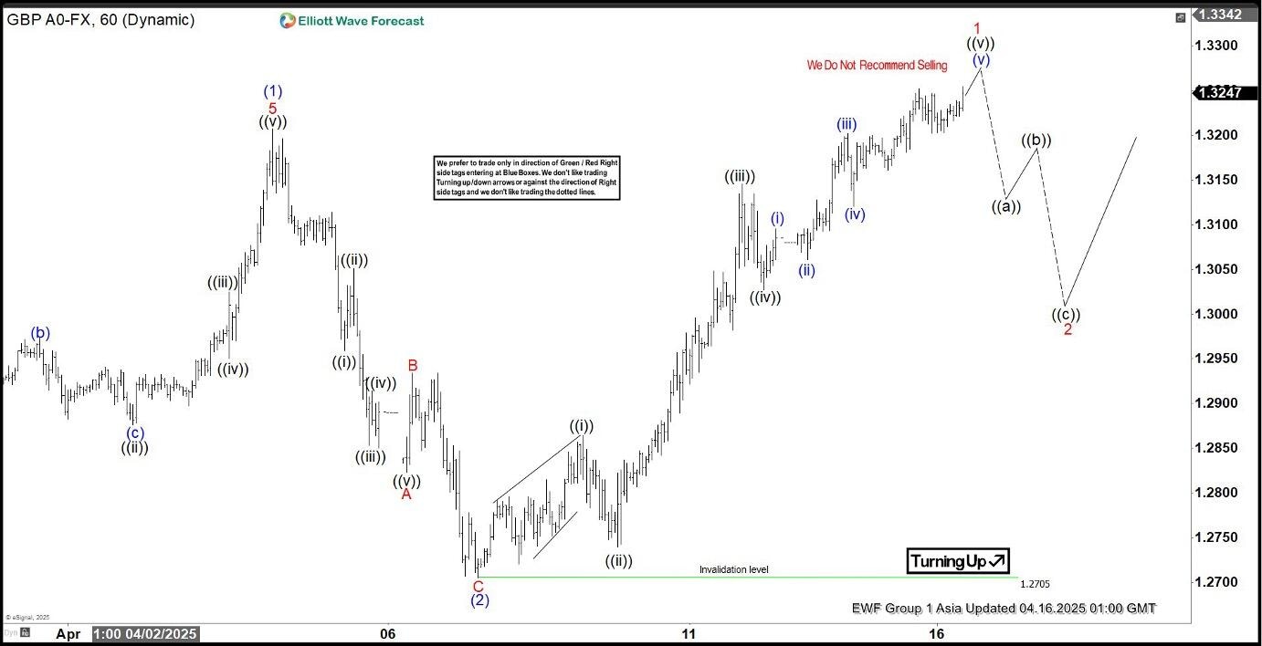 After this, the pair is likely to pull back in wave 2, correcting the upward move from the April 8, 2025 low. This correction could unfold in 3, 7, or 11 smaller swings before the pair resumes its upward trend. In the short term, as long as the 1.27 low holds, any dips should attract buyers in 3, 7, or 11 swings, supporting further gains.