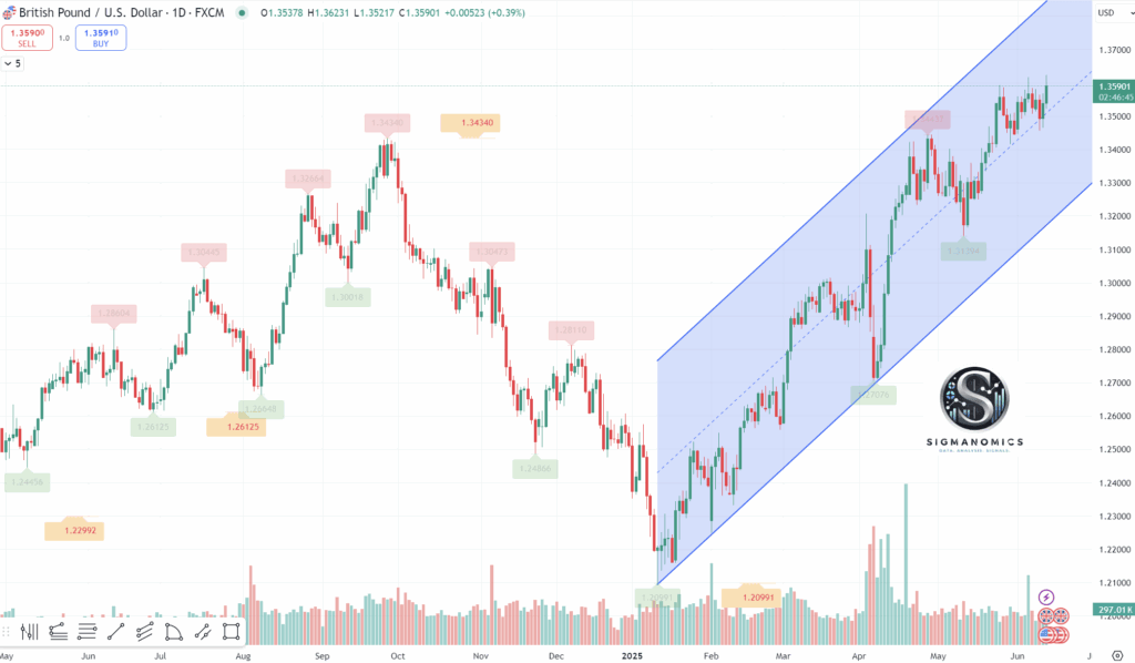 The greenback, commonly referred to as the cable, has reached its highest level against the U.S. dollar since early 2022, trading at the psychologically significant level of 1.36 as of June 2025. This currency pair has been influenced by diverging central bank policies, different economic narratives, and varying inflation rates on both sides of the Atlantic. In detail, the dollar has plunged nearly 10 percent on the back of underwhelming job data in the U.S. paired with speculation of Fed rate cuts on the back of inflation. Conversely, the U.K. has shown solid data with retail sales rising 1.2 percent in April, while inflation rose 3.5 percent year-over-over in April from 2.6 percent. This recent consumer prices report has led the Bank of England to reconsider moves toward rate cuts.