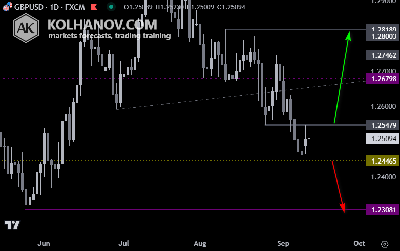 An downtrend will start as soon, as the market drops below support level 1,2446, which will be followed by moving down to support level 1,2308.