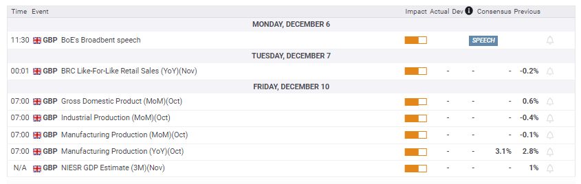 Gross Domestic Product figures for October stand out on the economic calendar. After jumping by 0.6% in September, the UK's growth rate likely softened in October. Supply-chain issues and a cooldown after the reopening are in play.