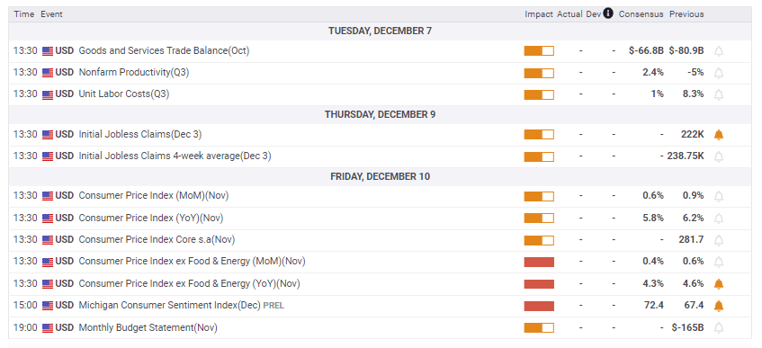Monday's release of Unit Labor Costs is also essential, as it serves as another gauge of wage inflation, which affects core prices. Another noteworthy publication is the University of Michigan's preliminary Consumer Sentiment Index for December. After tumbling to 67.4 points in November – a decade low, recovery is on the cards. However, the gauge has failed to project consumption in recent months, and therefore, carries less weight.