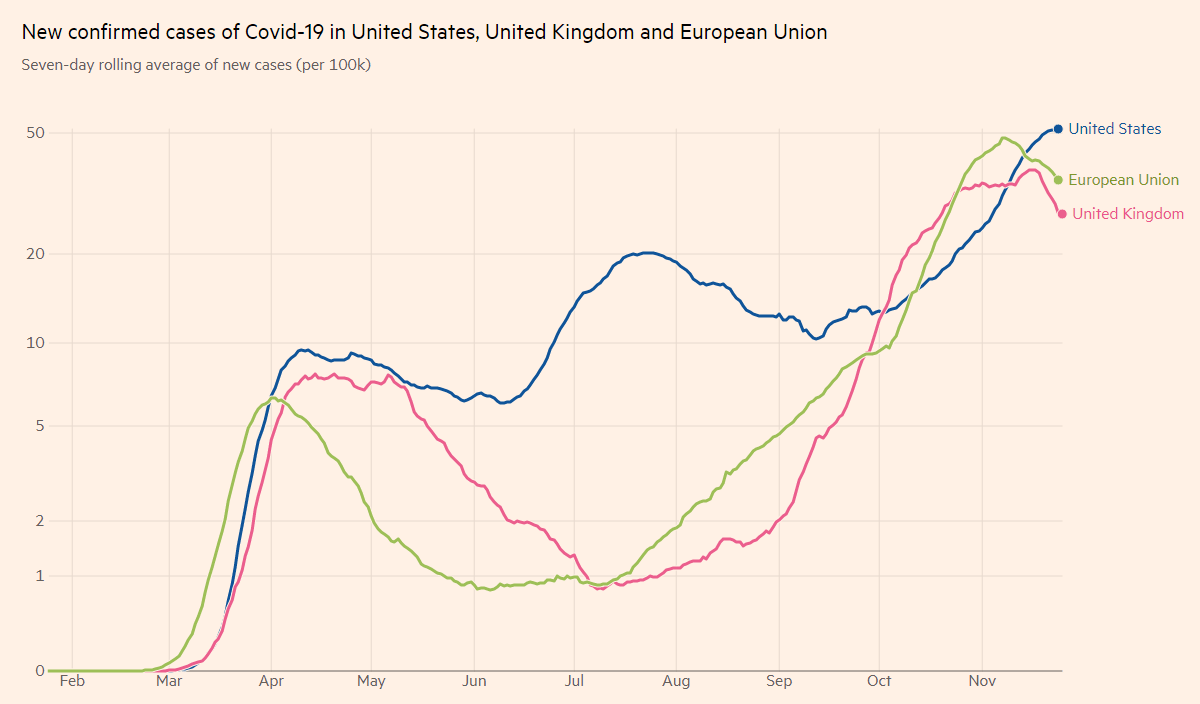 Covid infections in the US, the EU and the UK