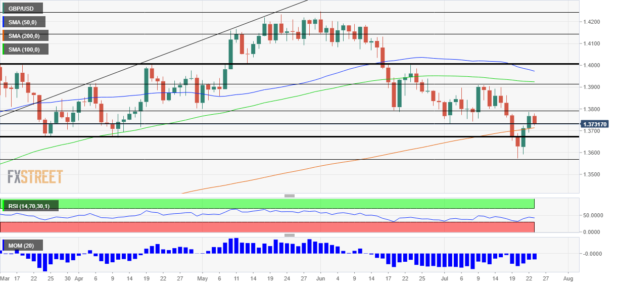 The 1.3730 level, which was a low point in late June, remains a battle line for the pair. Looking up, 1.38 provided support in June and held GBP/USD down in late July. It is followed by 1.3910, a stubborn cap in early July, and nearly converges with the 100-day SMA. Further above, 1.40 is eyed.