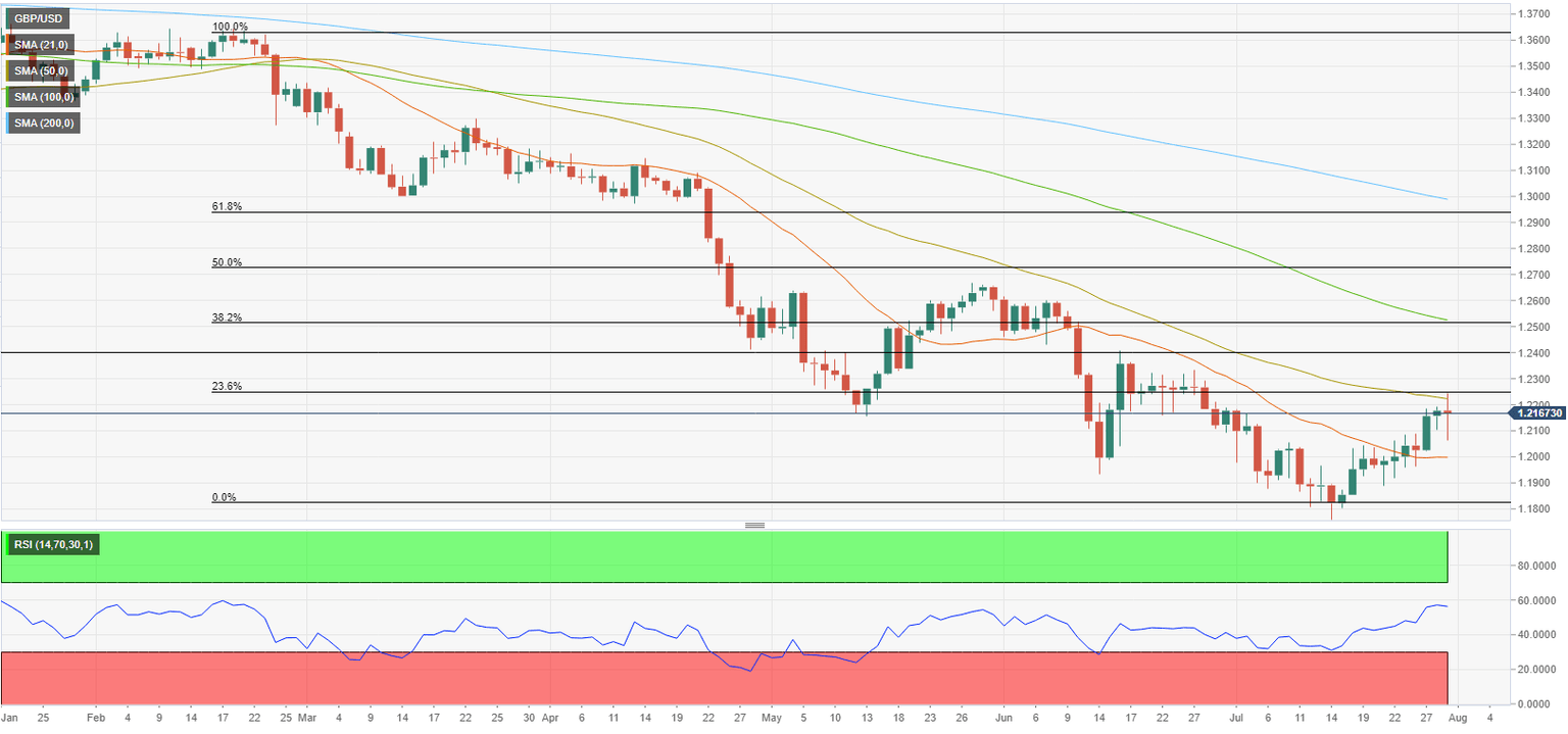 On the downside, a daily close below 1.2200 (20-day SMA, psychological level) could be seen as a significant bearish sign and open the door for additional losses toward 1.1900 (psychological level, static level) and 1.1800 (the end-point of the downtrend).