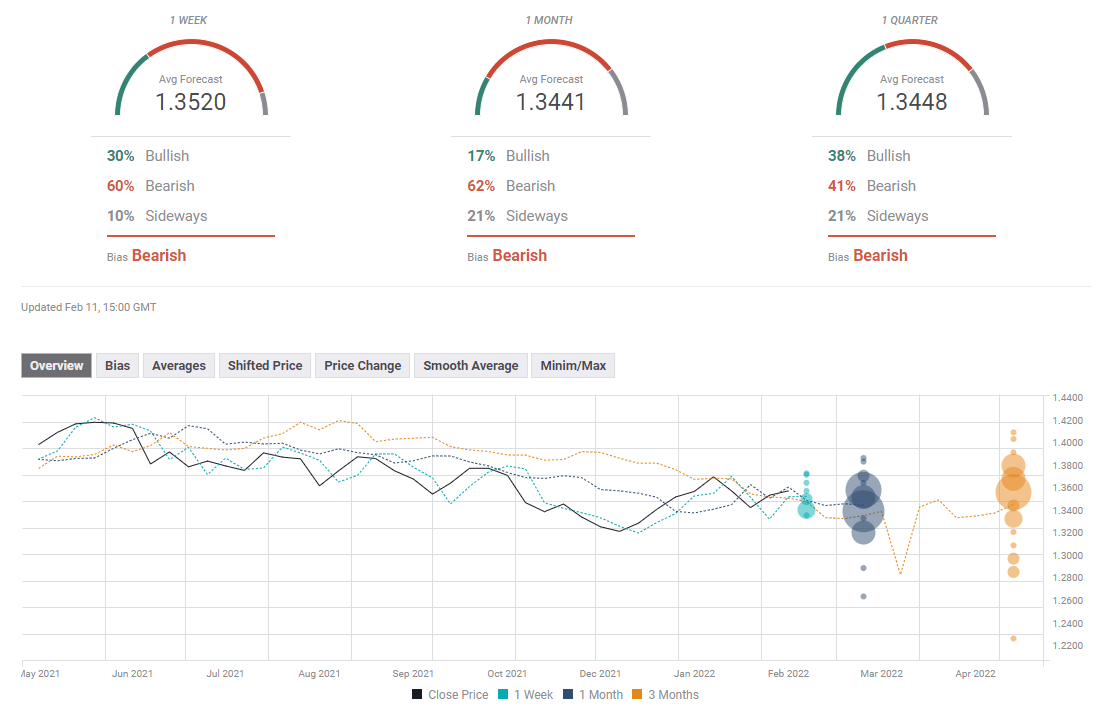 Despite the fact that the British pound managed to stay resilient against the dollar this week, experts don't see GBP/USD pushing higher next week. The average target on the one-week view aligns at 1.3520. Moreover, the FXStreet Forecast Poll shows that the selling pressure is likely to remain intact for the next few weeks with a bearish target of 1.3440 on the one-month view.