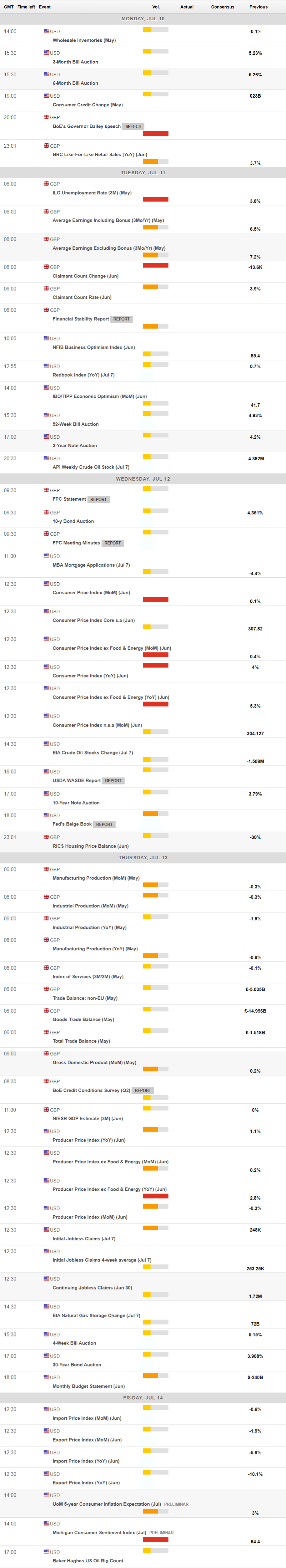 Eyes on United States CPI, UK jobs data and Bailey’s speeches