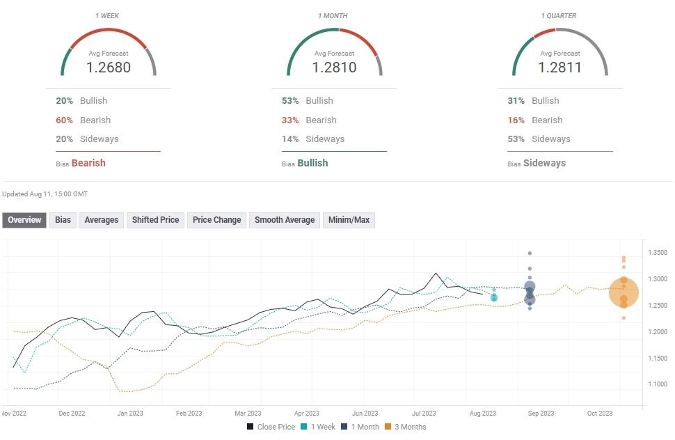 The FXStreet Forecast Poll indicates a mild bullish bias in the short term, as the one-week average target aligns slightly below 1.2800. The one-month outlook has shown improvement compared to last week, with several experts predicting the pair to move above 1.2800. The average forecast for the next quarter remains relatively neutral, with the average not deviating far from 1.2800.