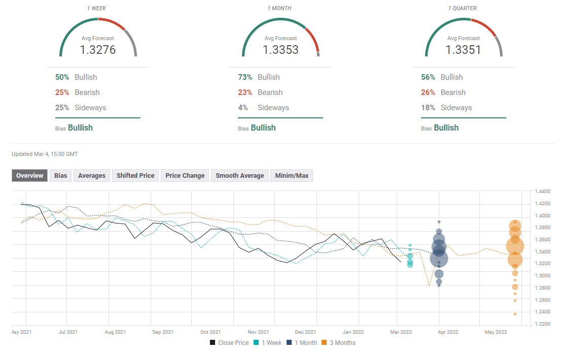 Despite the sharp decline witnessed this week, FXStreet Forecast Poll shows that experts expect the pair to stage a recovery next week. Toward the end of March, GBP/USD is forecast to trade around mid-1.3300s.