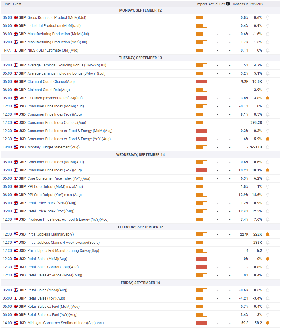 On Wednesday, the UK will report its monthly inflation, which could hit another multi-decade high after accelerating to 10.1% in July. Traders will also watch out for the US Producer Price Index (PPI) gauge. Britain’s inflation data will hold relevance ahead of the BOE monetary policy decision on September 22. The US Retail Sales, Weekly Jobless Claims and Industrial Production data will also garner some attention later that day.