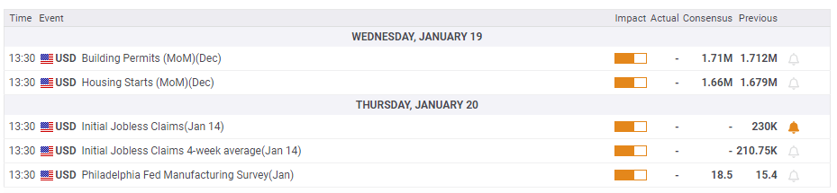 The economic calendar is relatively light after two busy weeks. Nevertheless, US housing figures are of interest on Wednesday. The sector has been booming amid the pandemic-triggered "race for space" – ‘space’ to work from home. Weekly jobless claims for the week ending January 13, when Nonfarm Payrolls surveys are conducted, may move markets more than previous weeks.