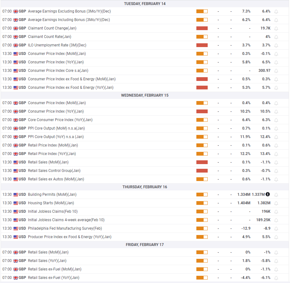 After a relatively data-light week, traders brace for a week dominated by high-impact data from both the United States and the United Kingdom. Monday lacks any significant economic data releases and therefore, Tuesday’s employment data from the United Kingdom will be eyed ahead of the all-important United States Consumer Price Index (CPI) data. The US CPI report will hold the key in providing significant insights into the Federal Reserve’s monetary policy outlook, as it is the most influential macroeconomic indicator to measure consumer inflation.