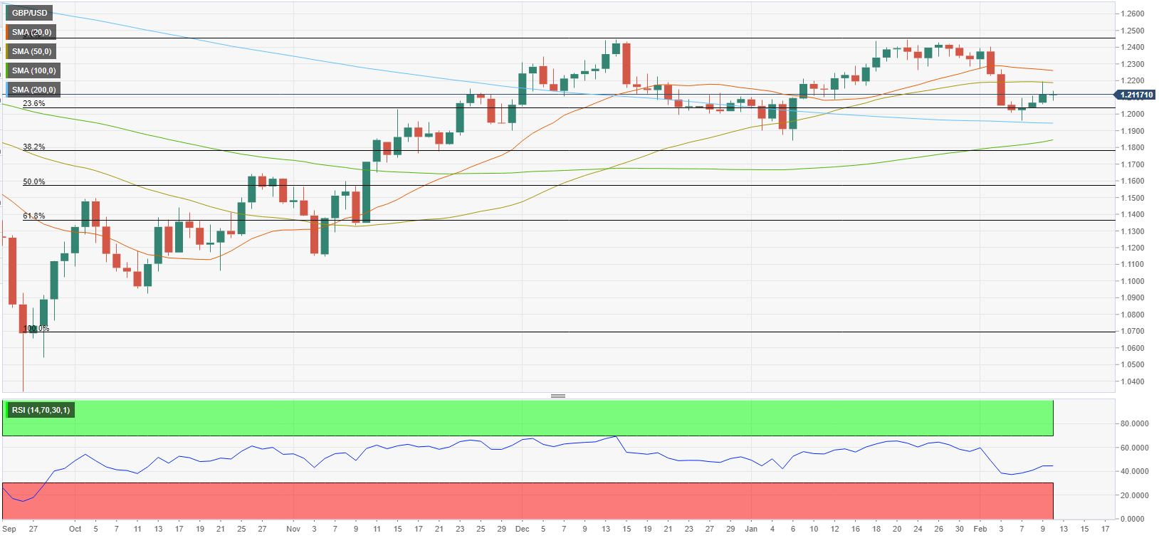GBP/USD tumbled to fresh five-week lows of 1.1961 in the early part of the week, and thereafter, staged a decent turnaround as the US Dollar struggled to extend its recovery. Expectations surrounding the US Federal Reserve (Fed) policy tightening path continued to play a pivotal role throughout the week, as investors re-evaluated the odds of a dovish Fed pivot or a pause in the central bank’s rate hikes. The upswing in the US Dollar following the February Fed policy outcome lost steam on Tuesday, as USD bulls retreated sharply from five-week highs on less-hawkish commentary from Federal Reserve Chair Jerome Powell. Powell’s remarks on disinflation triggered a risk rally and checked the US Dollar recovery from a 10-month trough, as investors hoped that the start of the disinflationary process could prompt the central bank to slow further down on its interest rate hike campaign.