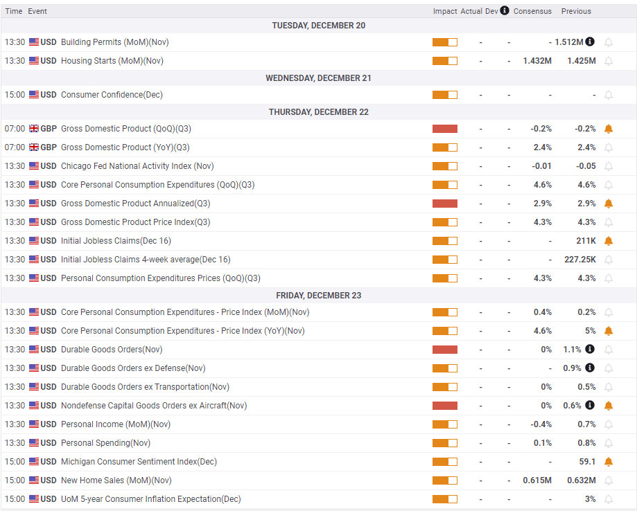 GBP/USD reversed sharply from a six-month top and ended the week marginally lower amid a bumper week for central bank activity, which brought the US Federal Reserve (Fed) and the Bank of England (BoE) monetary policy divergence back to the fore. Investors now shift their attention toward the last full week of 2022, eyeing the top-tier United States economic data amid a relative quiet docket for the United Kingdom.