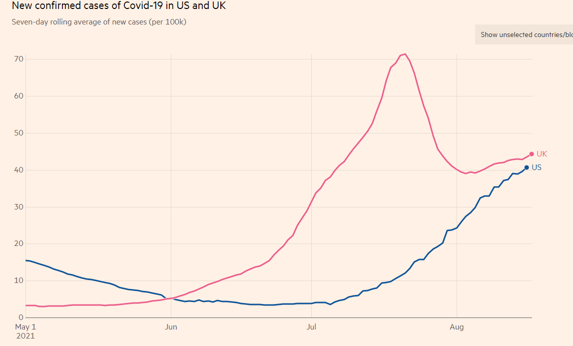 Will Britain bend the covid curve once again? After cases related to Euro 2021 dropped, infections crept up again while the vaccination campaign slowed down. The key to winning the virus and restoring consumer confidence lies with immunization, especially of the young.