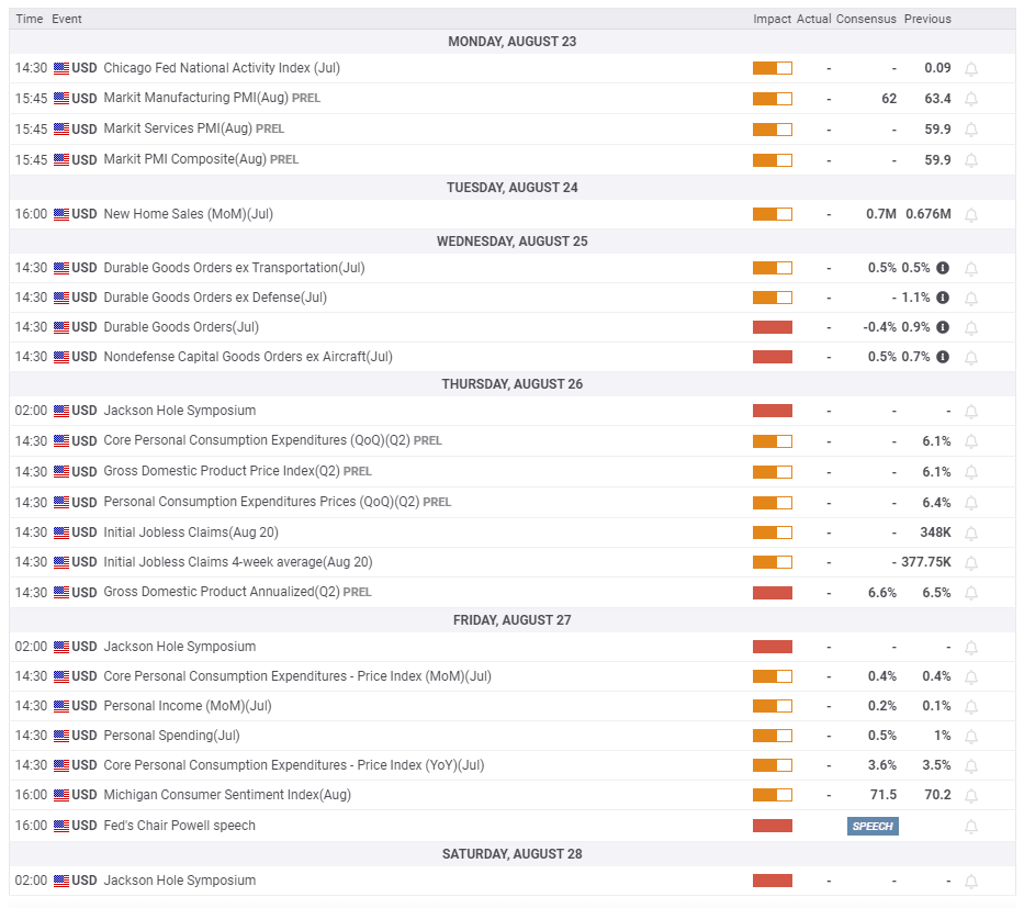 On the economic calendar, the best awaits for last – Federal Reserve Chair Jerome Powell's speech at Jackson Hole. Investors are eager to hear if the world's most powerful central bank is about to announce tapering down its bond-buying scheme. It currently creates $120 billion every month.