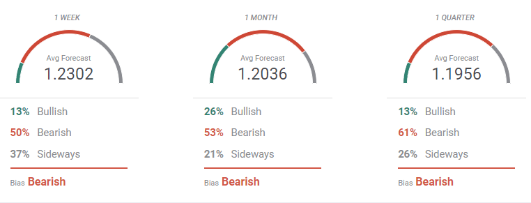 The FXStreet Forecast Poll for the GBP/USD pair shows that bearish are still a majority, even in the near term. On average, the pair is expected to hover around 1.2300 next week, as 50% of the polled experts are looking for lower-than-current levels. In the longer run, the spread of potential targets have continued to widen. Some firmly bearish banks oppose to analysts looking for bullish breakouts.