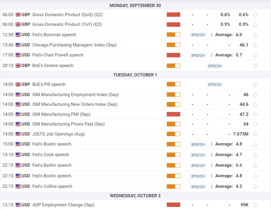 Monday kicks off with a bang, as Fed Chair Jerome Powell is due to participate in a moderated discussion titled "A View from the Federal Reserve Board" at the National Association for Business Economics Annual Meeting in Nashville. BoE policymaker Megan Greene’s speech will follow.