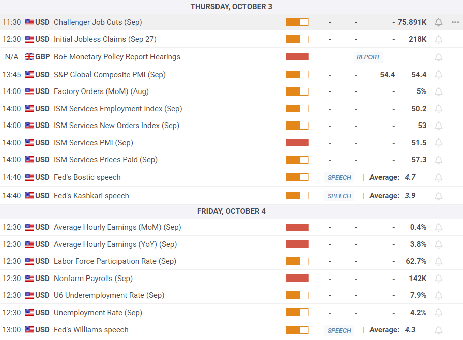 Early Wednesday will feature a bunch of other Fed policymakers speaking at the Technology-Enabled Disruption Conference hosted by the Federal Reserve Bank of Atlanta. Later that day, the ADP Employment Change data will hog the limelight in American trading alongside more Fedspeak.