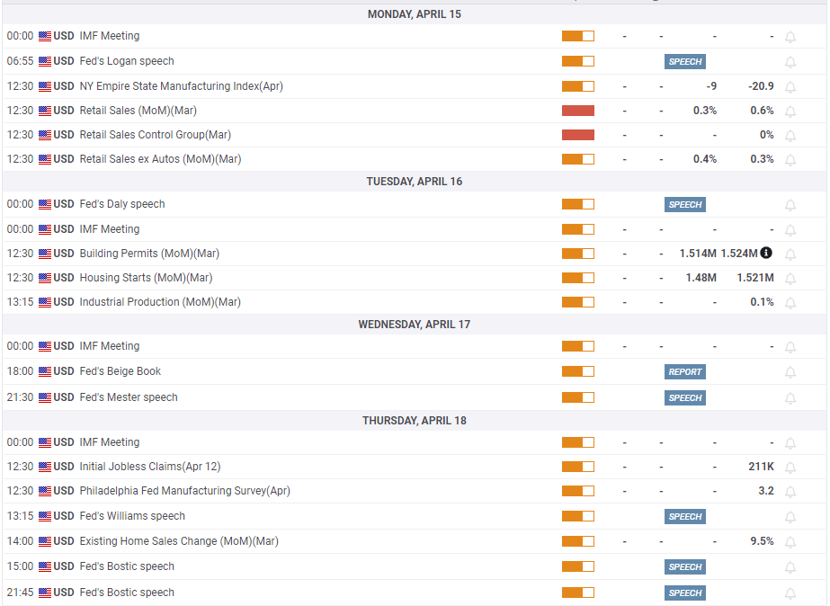 The inflation data will be released on Wednesday. Ahead of that, the US docket will feature the March Retail Sales report on Monday while BoE policymaker Sarah Breeden will speak earlier that day.