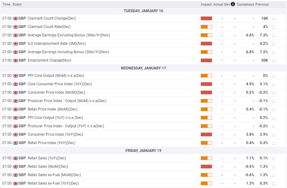 Pound Sterling traders brace for the high-impact employment and inflation data from the United Kingdom (UK) in a holiday-shortened upcoming week. The US markets are closed on Monday, in observance of Martin Luther King Jr. Day.