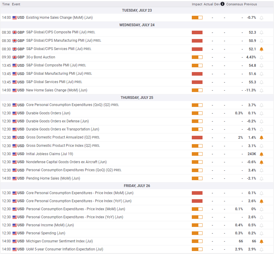 The tide, however, turned in favor of the US Dollar buyers, helping the Greenback stage an impressive comeback in the latter part of the week. Wall Street witnessed a significant sell-off, as traders rotated away from high-priced megacap growth stocks amid the second-quarter earnings season. Further, escalating US-China trade tensions also aggravated risk-off sentiment, as markets remained wary of a further worsening of trade relations under a potential Donald Trump’s US presidency. A report that the US was considering tighter curbs on exports of advanced semiconductor technology to China sent chip stocks and the Nasdaq tumbling, per Reuters.