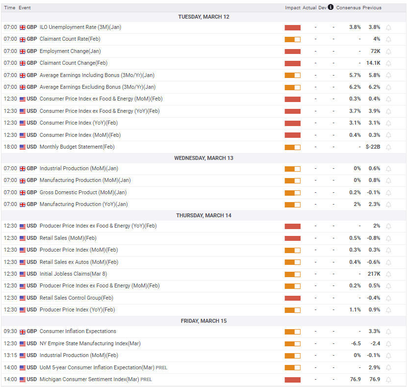 On Wednesday, the monthly UK GDP report for January will be published alongside the Industrial and Trade figures, while the US economic calendar remains devoid of any top-tier data.