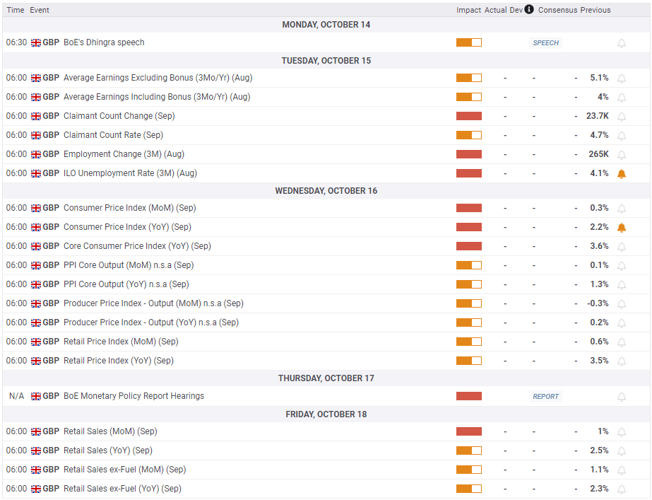 It’s a holiday-shortened week, as US markets are closed on Monday on account of Columbus Day. That puts the focus on Tuesday’s UK labor data.
