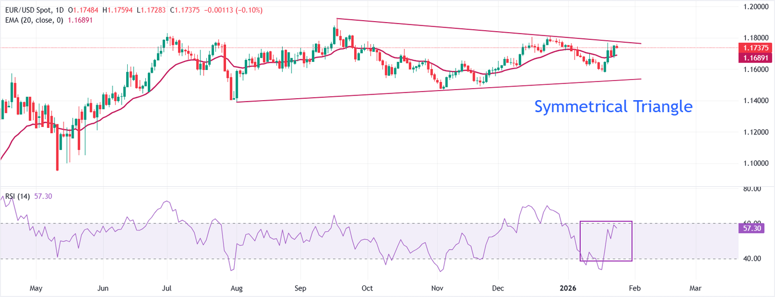 Geopolitical and trade tensions between two of the world’s largest economies pushed DXY further lower to 98.25 on Tuesday. However, it regained ground after President Trump rolled back increased import duties and ruled out military action on Greenland, while speaking at the WEF on Wednesday. The DXY rebounded to near 98.87 as signs of easing US-EU tensions recovered the appeal of the Greenback and US assets. Trump also announced that both Washington and the North Atlantic Treaty Organization (NATO) reached a framework of a “future deal with respect to Greenland, and in fact, the entire Arctic Region” after meeting with NATO Secretary General, Mark Rutte.