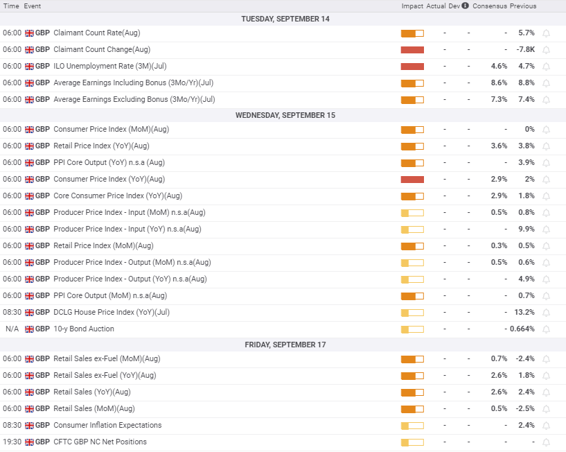 Pending UK data, unemployment, CPI and Retail Sales for August should provide the sterling with support but without a more definite buy-in from the BOE on policy, the pound will not traverse new ground.
