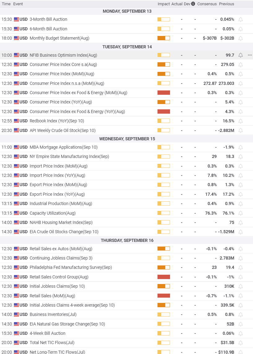 In the US, consumer prices and Retail Sales for August have center stage. Inflation is a major factor behind the drop in consumer sentiment and its impact on sales after July's unexpected decline will be closely watched. Weaker than expected US figures will favor the pound over the dollar.
