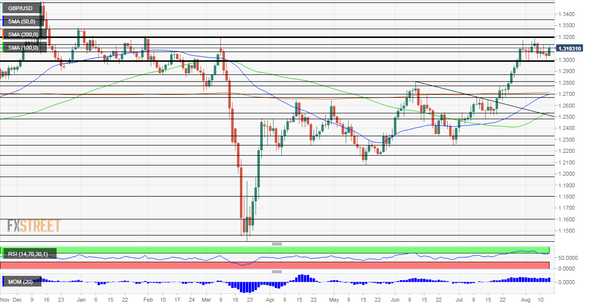 The Relative Strength Index on the daily chart is still flirting with 70 – moderately overbought. Momentum remains positive and GBP/USD is trading above the 50, 100, and 200-day Simple Averages. All in all, the picture is not 100% bullish.