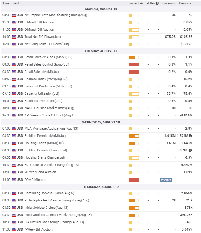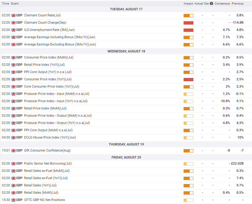 The UK has a busy week on tap with unemployment for June and inflation and Retail Sales figures for July.