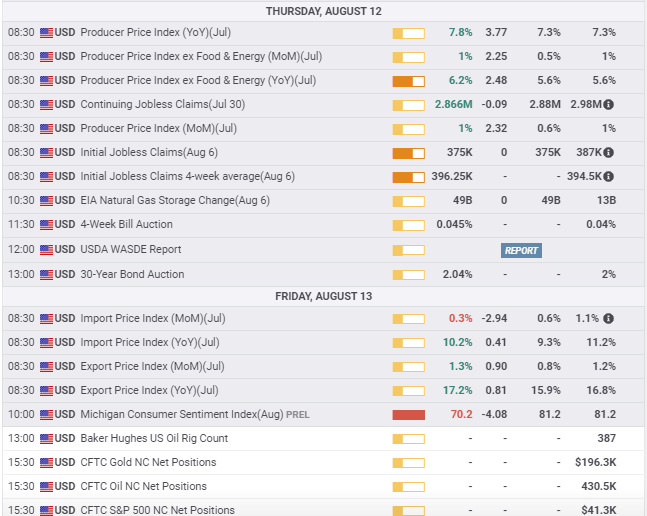 In the US, July's annual Core CPI at 4.3%, a bit less than the 4.5% forecast, and the unchanged headline rate at 5.4%, supported the Fed’s contention that the inflation increases will be transitory. However, PPI for July was the opposite with the headline rate of 7.8%, and the core gauge at 6.2%, setting records and far above their forecasts.